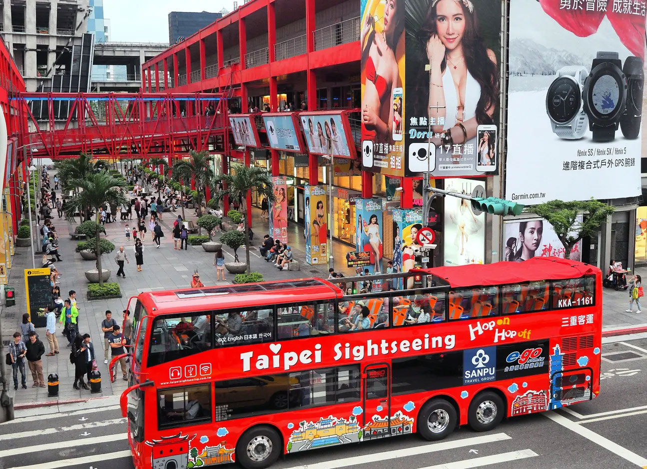台北雙層觀光巴士,擁有亮眼紅色車身,搭配頂層半露天座位,外觀結合熱門景點繪圖,相當搶眼吸睛,讓你的台北旅程,變得更加便捷和浪漫!白天晚上皆可搭乘,分為經典紅藍路線,行經國父紀念館、行天宮、西門紅樓等景點,車輛上也會搭配中、英、日、韓的多語系導覽系統,方便了解各景點資訊。全天任意上下車,輕鬆暢遊台北熱門景點,自由開啟你的台北熱門地標之旅!