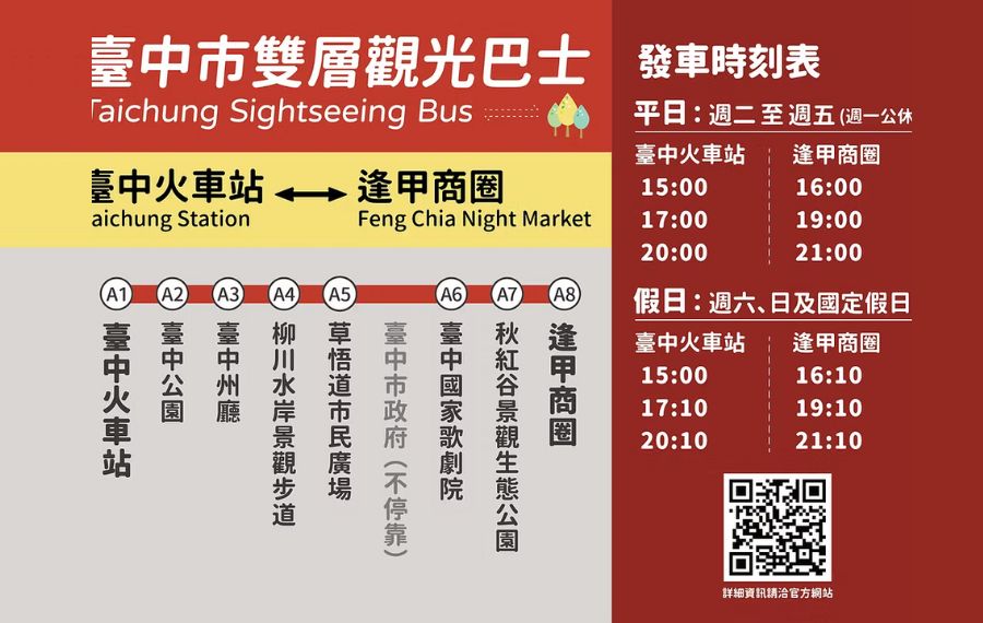 無論是旅行中的遊客還是想要重新認識家鄉的在地人,絕對是發掘台中之美的最佳方式。快來搭乘,感受台中風光與文化的獨特魅力!