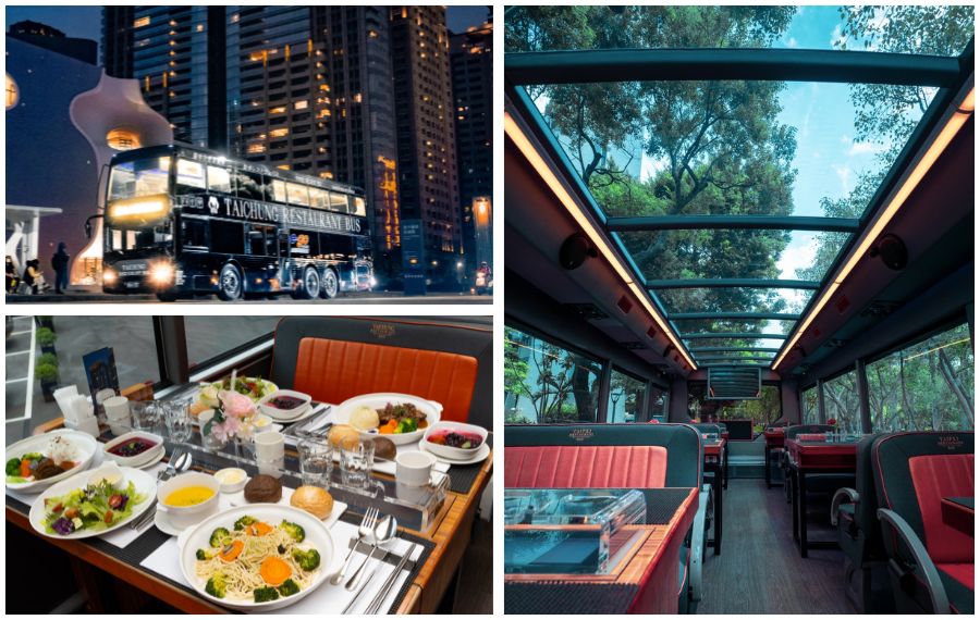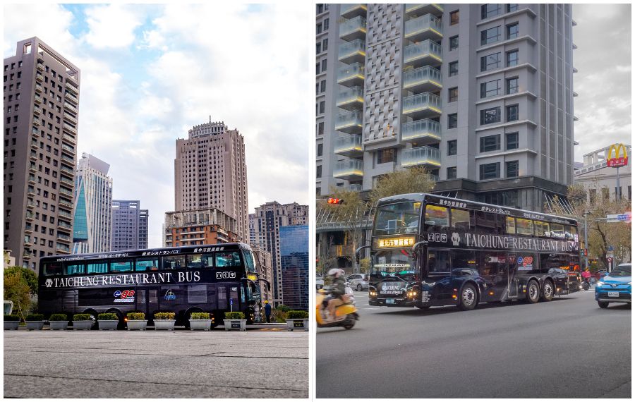 搭乘「極光黑」雙層觀光餐車,透過全景玻璃天窗,360度飽覽台中美麗的城市風光。